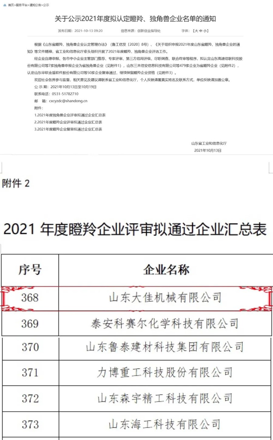 Source: TBBView: 133On October 13, the Shandong Provincial Department of Industry and Information Technology released the 2021 list of certified Gazelle and Unicorn Enterprises. Shandong Tobetter Machinery Co., Ltd. has been officially recognized as a Provincial Gazelle Enterprise!