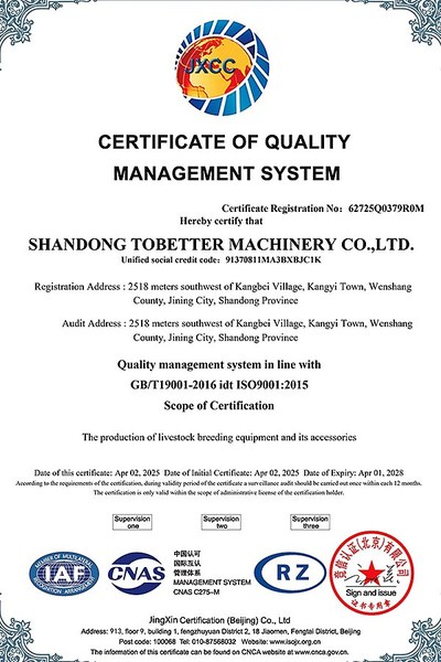 Shandong Tobetter Machinery Co., Ltd. Established in 2015 and recognized as a National "Little Giant" specialized and innovative enterprise, Shandong Tobetter Machinery is a leading integrated manufacturer in China's livestock farming equipment industry. We specialize in the R&D, production, and service of automated layer, broiler, pullet, and duck farming systems, alongside supplementary solutions for pig farms.